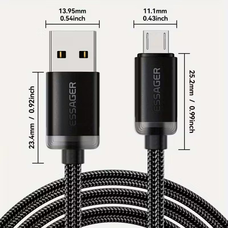 ESSAGER ES-X60 - 1 metr, USB Type-A - USB-Micro, kabel USB, ładowanie 29 W, etui z perłowej tkaniny
