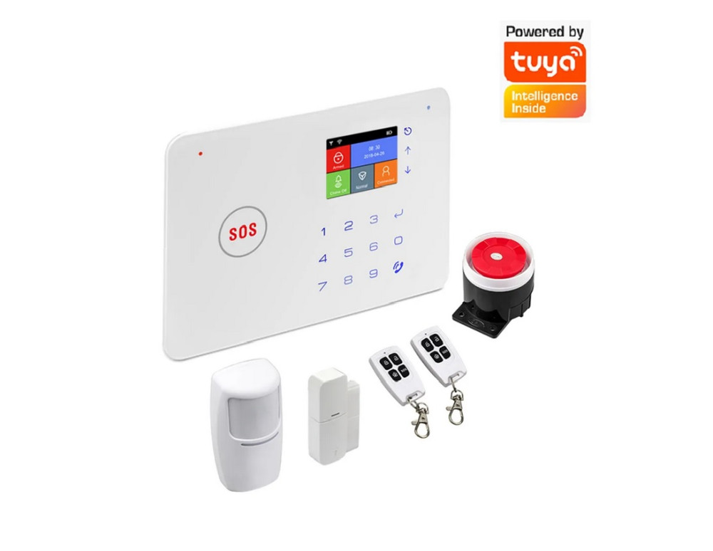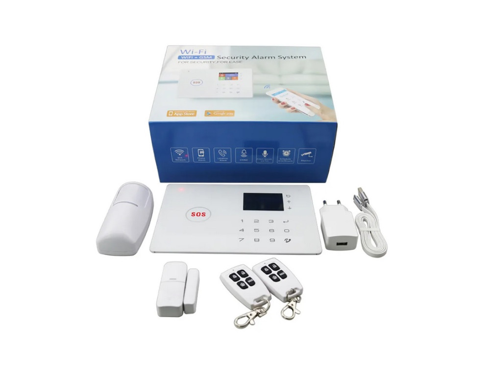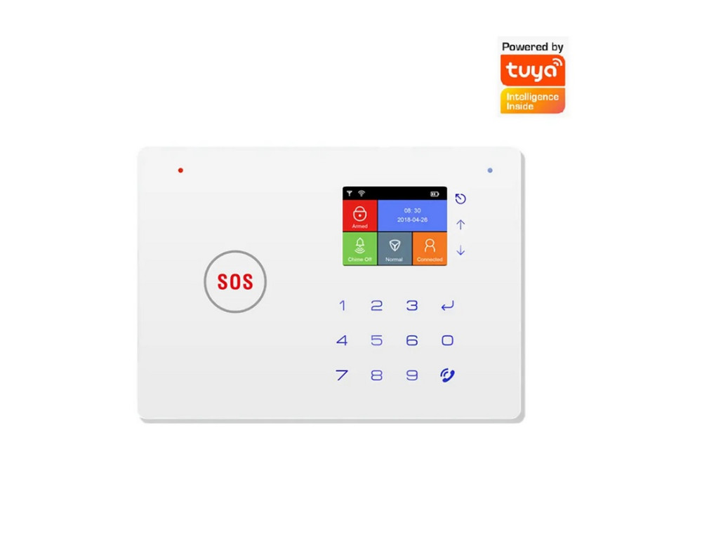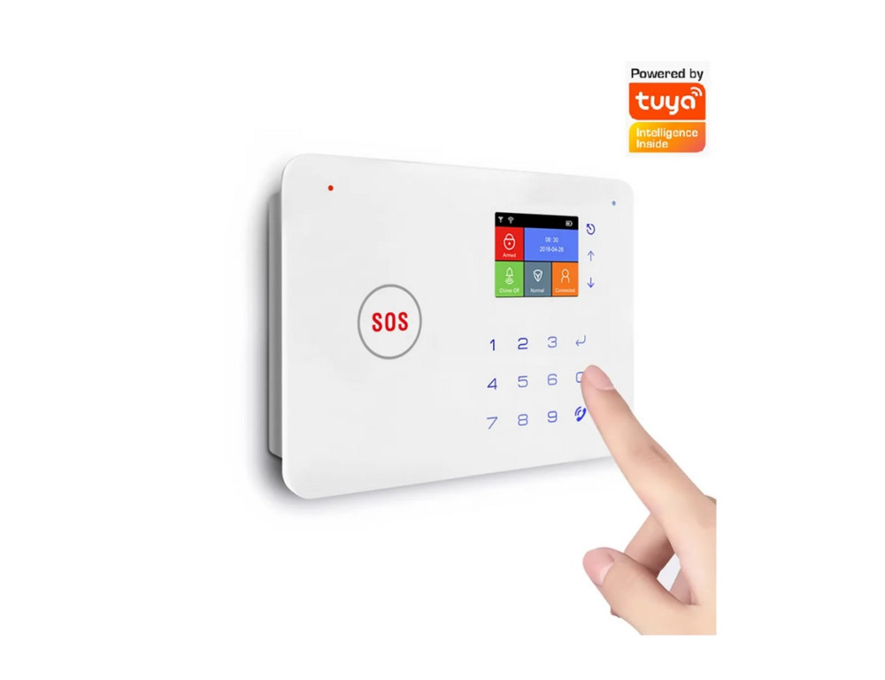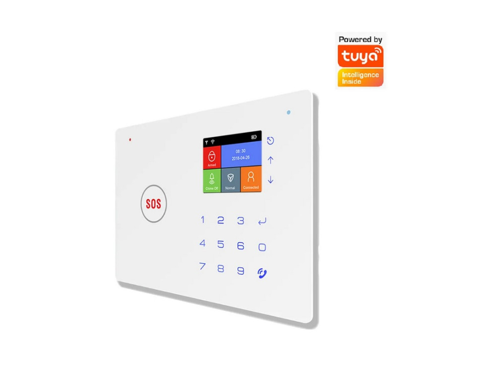 Bezprzewodowy alarm GSM i WiFi wyposażony jest w jasny kolorowy wyświetlacz oraz klawiaturę dotykową umożliwiającą szybkie sprawdzenie stanu alarmu lub przeglądanie historii zdarzeń. Można nim sterować za pomocą pilota lub inteligentnej aplikacji na telefonie.